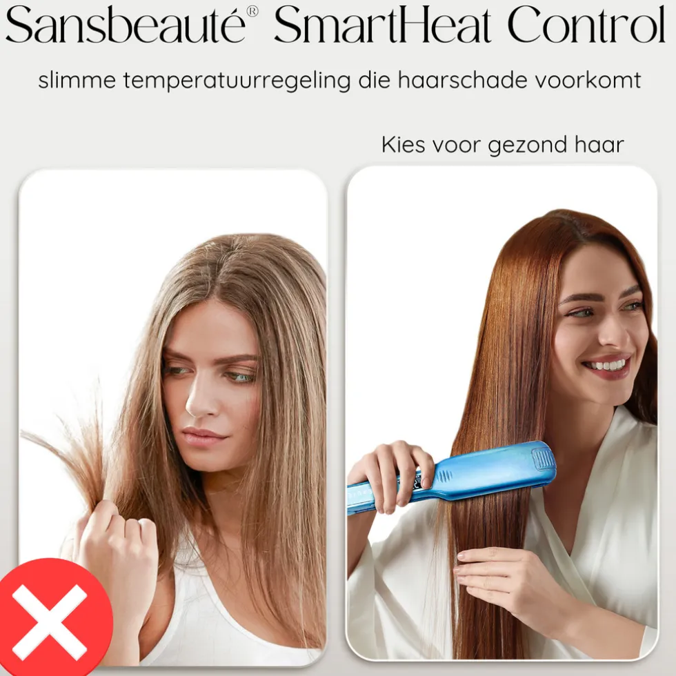 ✓ Sansbeauté® One Time Pass – Dankzij onze baanbrekende 4.5cm brede platen, ervaar je een compleet nieuwe manier van stylen. Het is een ware gamechanger in hairstyling, waardoor je sneller en handiger dan ooit tevoren prachtig gestyled haar kunt creëren. Vergeet het gedoe met kleine platen – met onze stijltang bereik je in één beweging een glad en glanzend resultaat.