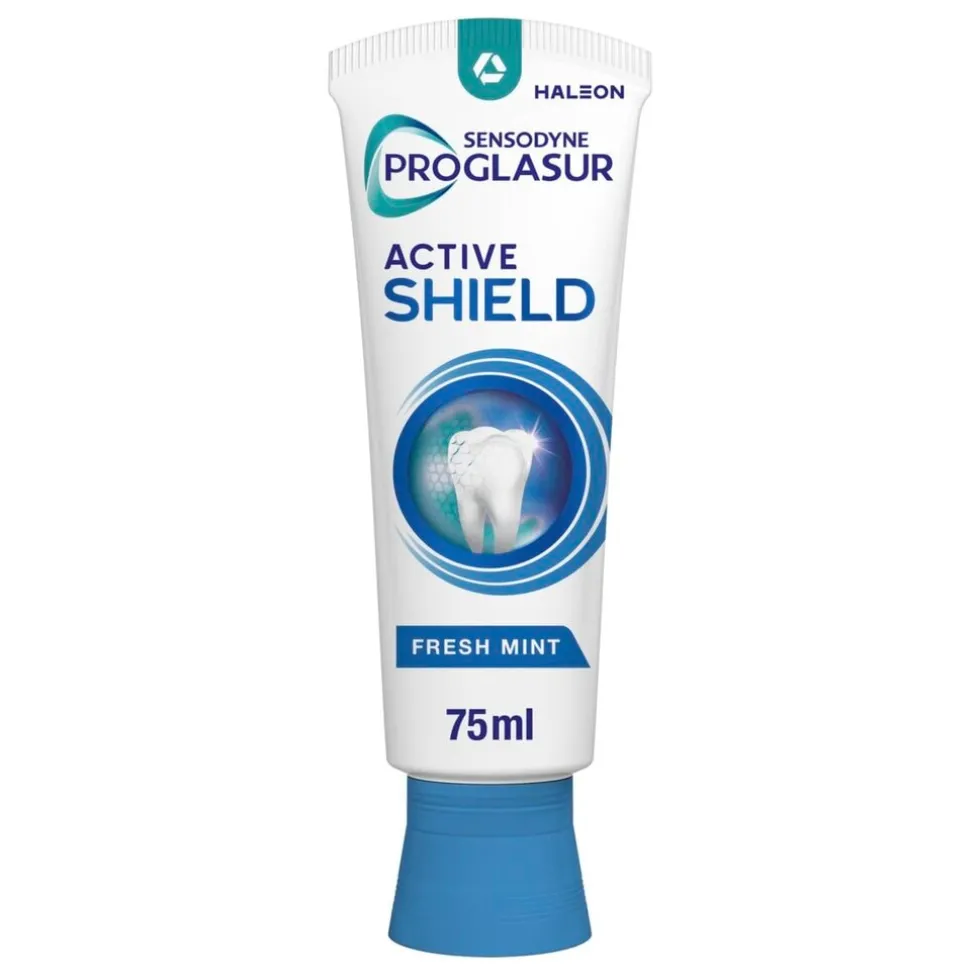 Sensodyne Proglasur Active Shield Fresh Mint Tandpasta beschermt je tandglazuur actief tegen gaatjes en voedingszuren. Het helpt bij het opbouwen van glazuurweerstand voor sterke en gezonde tanden.