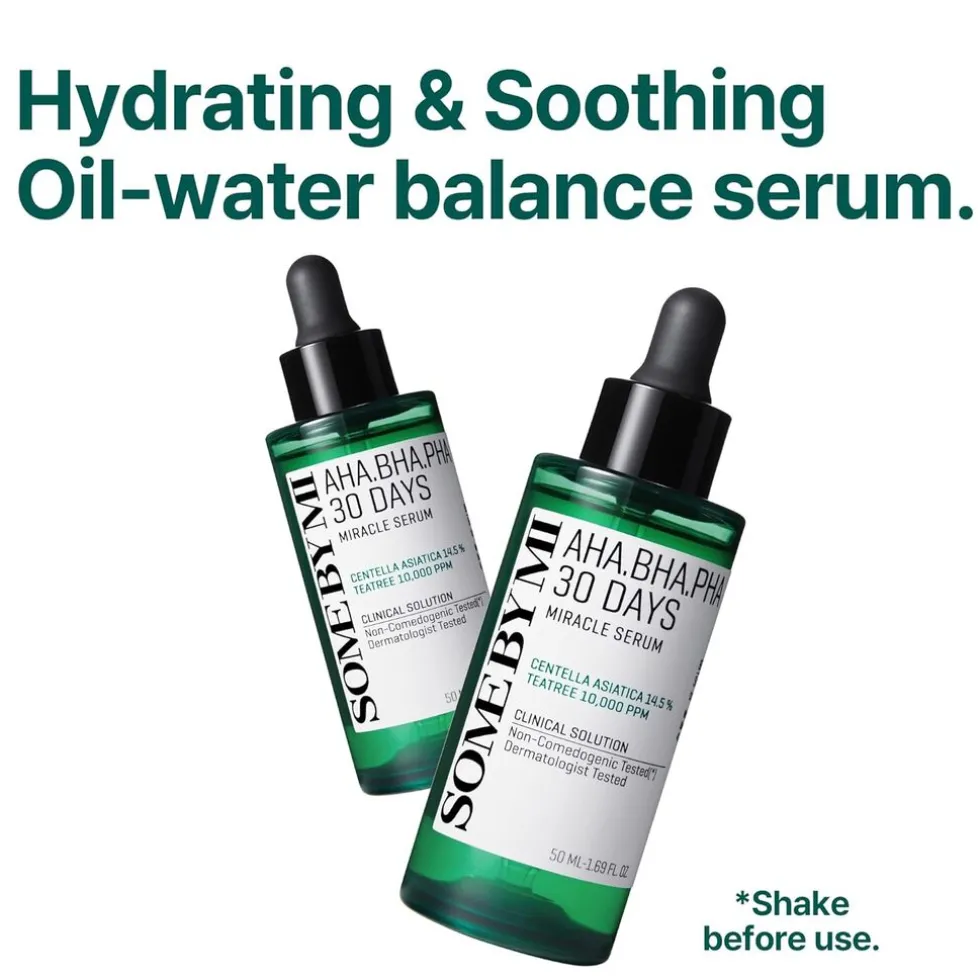 Het SOME BY MI AHA-BHA-PHA 30 Days Miracle Serum is een krachtig maar mild serum dat zich richt op acne, verstopte poriën, een ongelijkmatige huidstructuur en overtollig talg. Dankzij de combinatie van AHA, BHA en PHA exfolieert het op zachte wijze dode huidcellen, reinigt het de poriën in de diepte en stimuleert het de celvernieuwing voor een gladdere en stralendere huid. Verrijkt met Centella Asiatica-extract (14,5%) kalmeert het ontstekingen en versterkt het de huidbarrière, waardoor het ook geschikt is voor de gevoelige of acne-gevoelige huid. De lichte, niet-plakkerige textuur trekt snel in en zorgt bij regelmatig gebruik voor zichtbare resultaten binnen 30 dagen – een zuiverdere, rustigere en meer gebalanceerde huid.