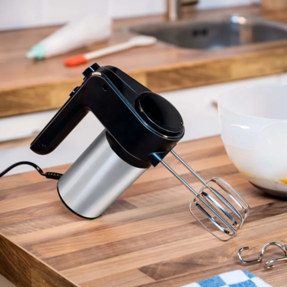 Een handmixer is een onmisbaar keukenapparaat voor iedereen die graag kookt of bakt. Deze zilverkleurige handmixer van alpina wordt geleverd met een klopgarden, kneedgarden en een geïntegreerd opbergstandaard waar je de accessoires aan vast kunt klikken wanneer je ze niet gebruikt. Zo houd je alles netjes bij elkaar. De mixer komt met de keuze uit 6 verschillende snelheidsstanden en een turbofunctie. Hiermee klop je elk beslag tot een luchtig geheel. De elektrische handmixer heeft een maximaal verbruik van 400 Watt en is klein van formaat, waardoor je hem in elke keuken kwijt kunt.