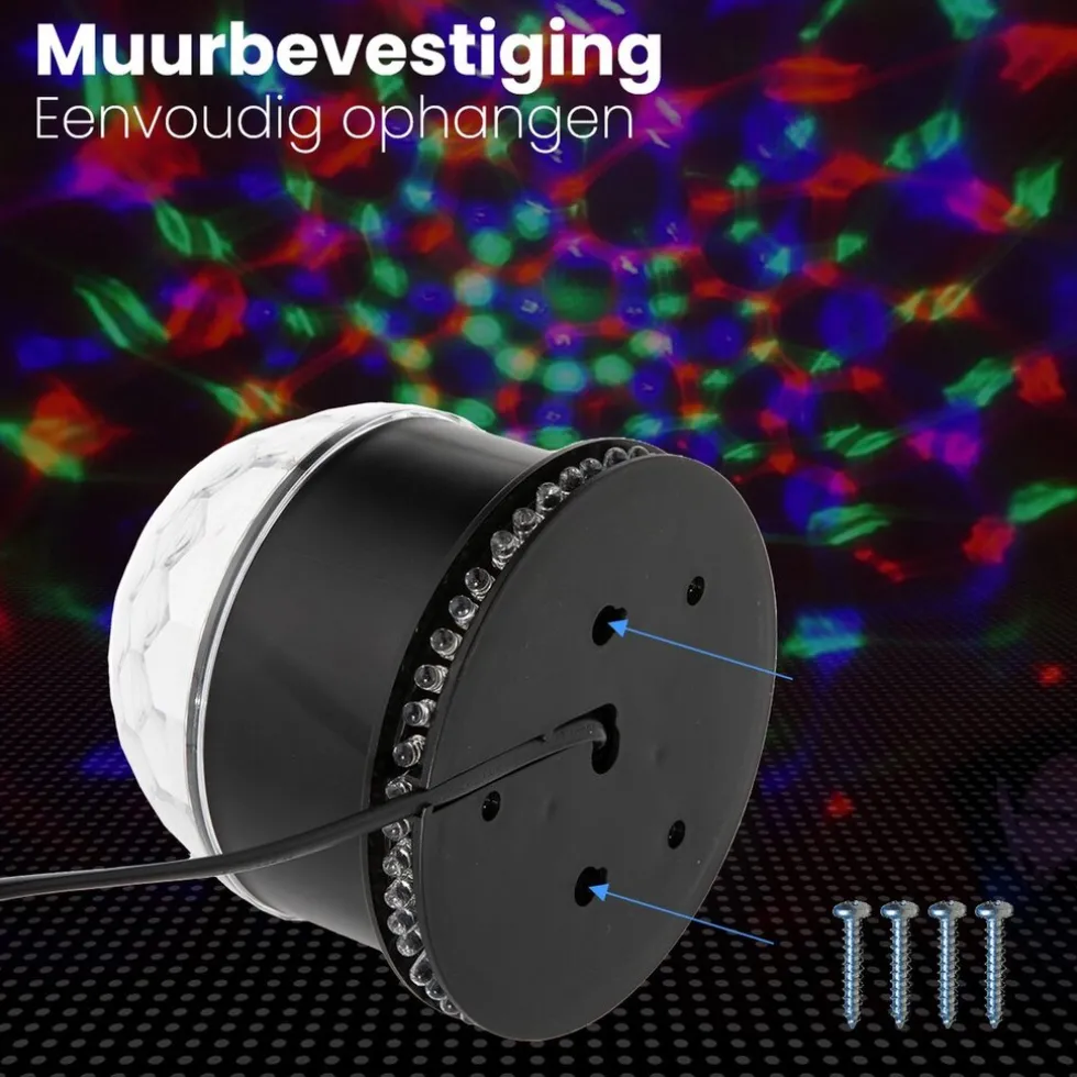 Thuis, feesten of in de club Deze discolamp is superleuk om je huis te veranderen in een disco! Gebruik hem op kinderfeestjes, verjaardagsfeesten, dansfeesten of andere gelegenheden. Hij is tevens ideaal voor in bars of cafeetjes.