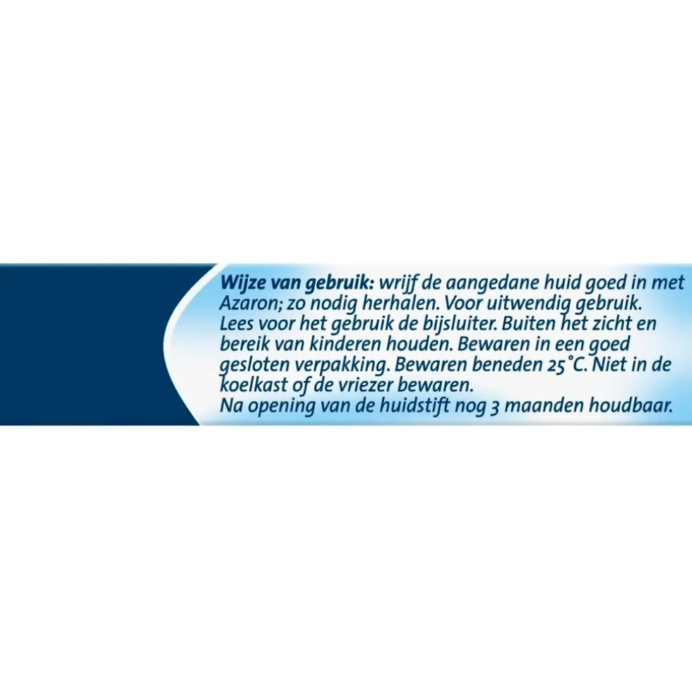 Wrijf de aangedane huid goed in met Azaron; zo nodig herhalen. Voor uitwendig gebruik.