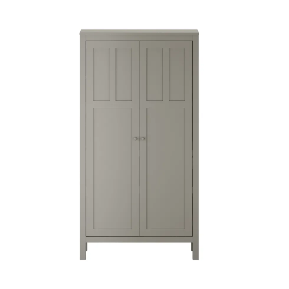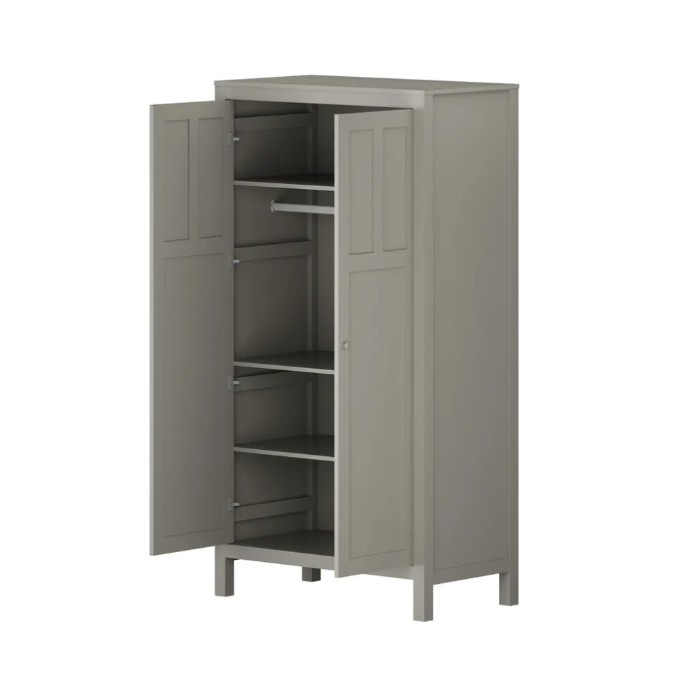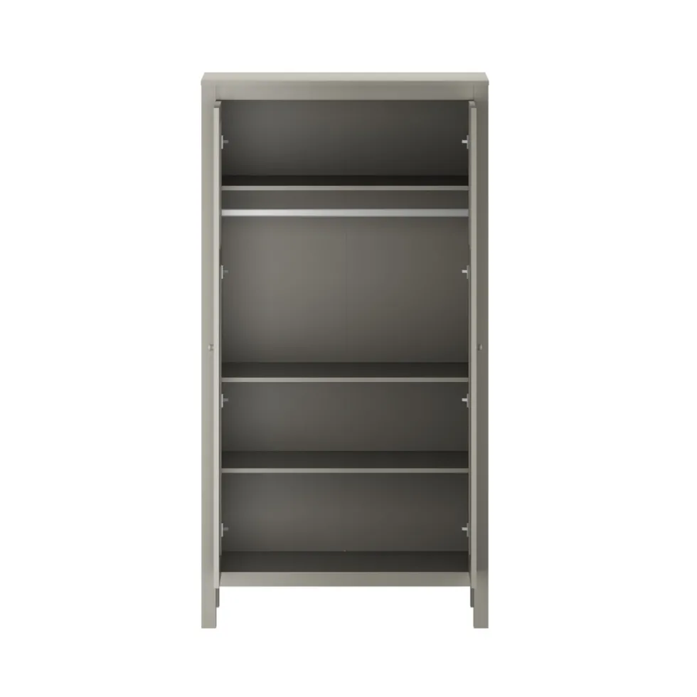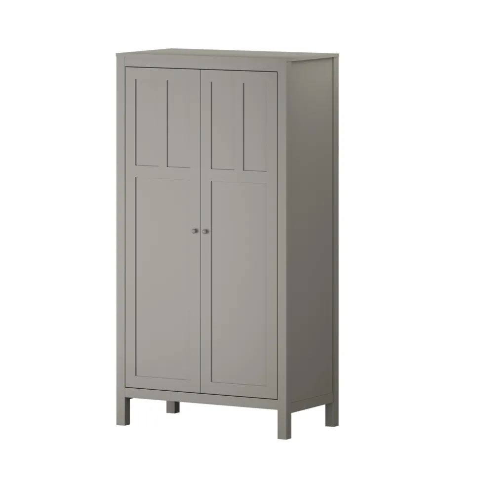 De tweedeurs kledingkast is voorzien van een hanggedeelte en legplanken. Zo kunnen alle kleding, hydrofiele doeken, beddengoed, speelgoed en andere spulletjes overzichtelijk worden opgeborgen. De royale opbergruimte maakt het eenvoudig om alles bij de hand en netjes georganiseerd te houden, ideaal tijdens drukke ochtenden!