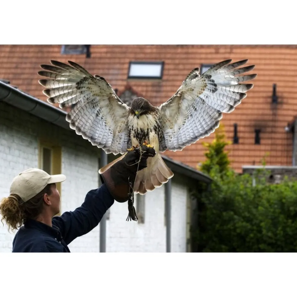 - Zelf verschillende roofvogels en uilen vasthouden op de handschoen;