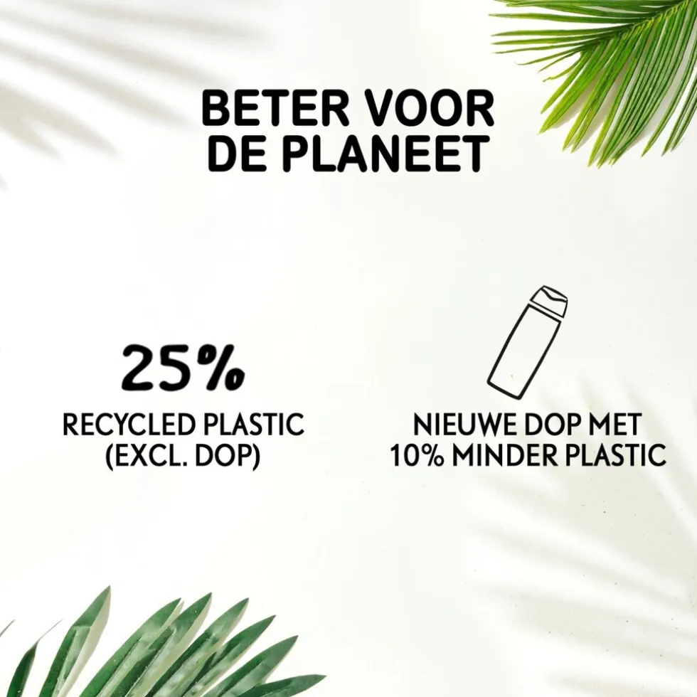 Deze Fa douchecrème met prebiotische formule bevat 93% ingrediënten van natuurlijke oorsprong* en zit in een met een 100% gerecyclede fles**. De fles en dop zijn recyclebaar***.