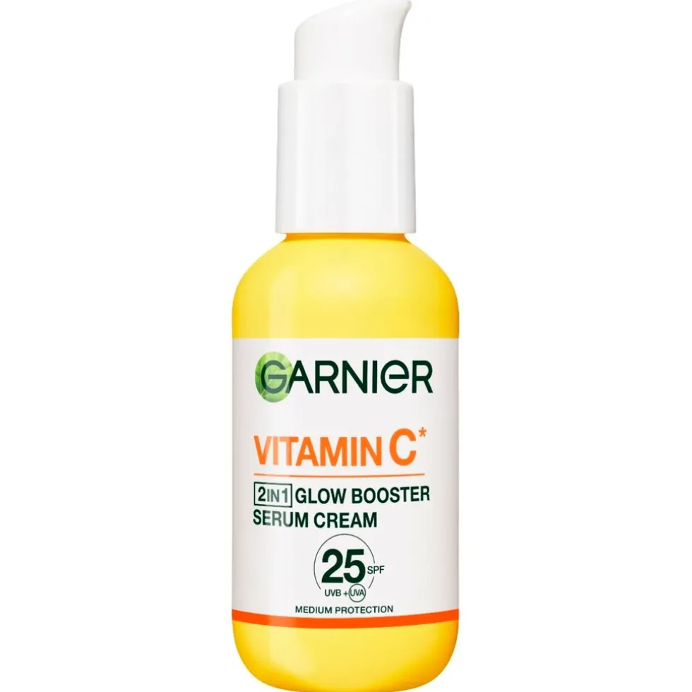 Het Garnier SkinActive Vitamine C Glow Booster Serum Cream* is een 2-in-1 serumcrème met SPF 25. Deze Glow Booster biedt de hydraterende voordelen van een crème met de werking van een serum.