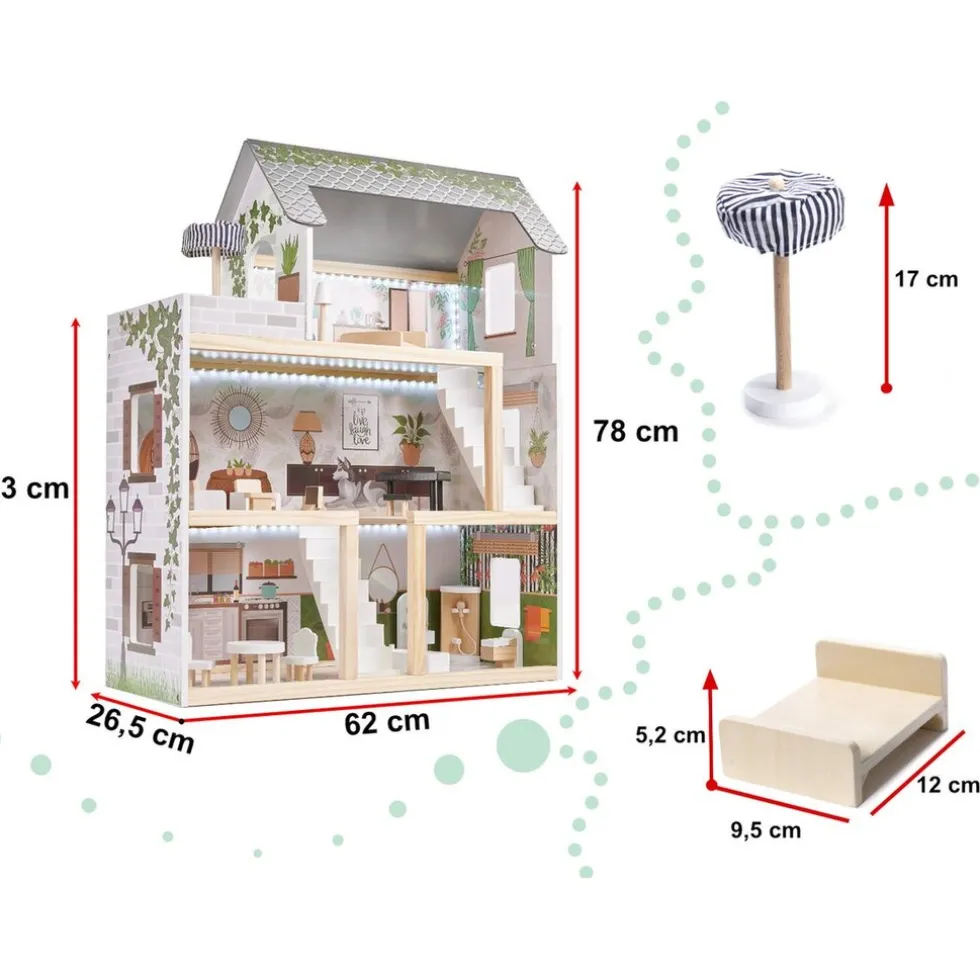 Online Ikonka Luxe Boho Stijl XL Houten Poppenhuis Met Meubels Met LED Verlichting