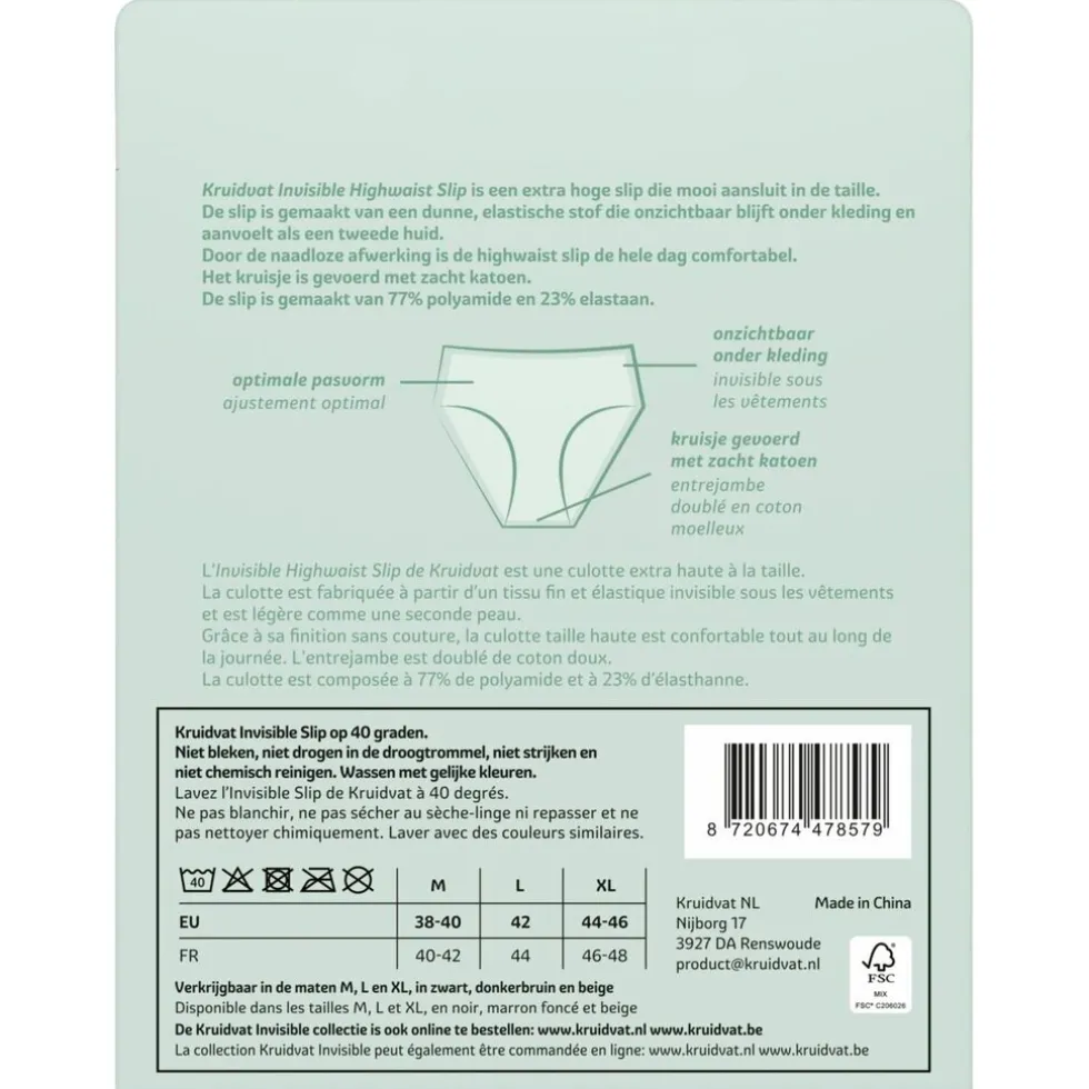 De Kruidvat Invisible Highwaist Damesslip is een extra hoge slip die mooi aansluit in je taille. De slip is gemaakt van een dunne, elastische stof die onzichtbaar blijft onder kleding en aanvoelt als een tweede huid.