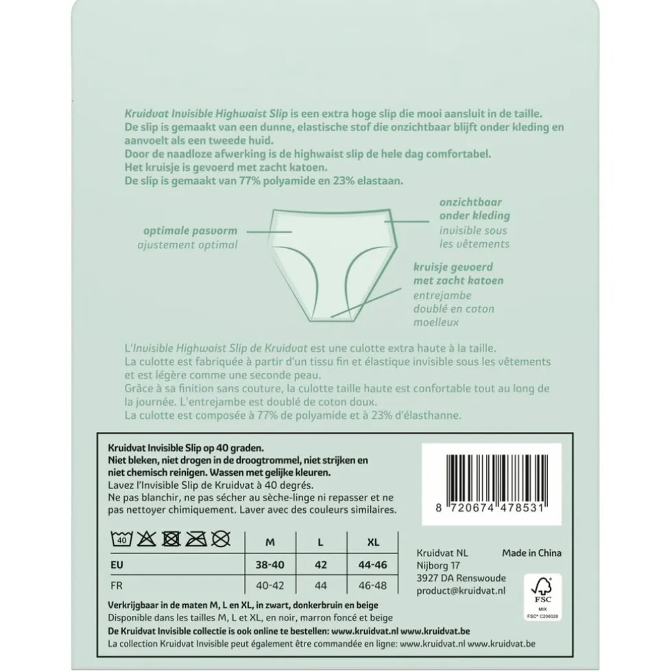 De Kruidvat Invisible Highwaist Damesslip is een extra hoge slip die mooi aansluit in je taille. De slip is gemaakt van een dunne, elastische stof die onzichtbaar blijft onder kleding en aanvoelt als een tweede huid.