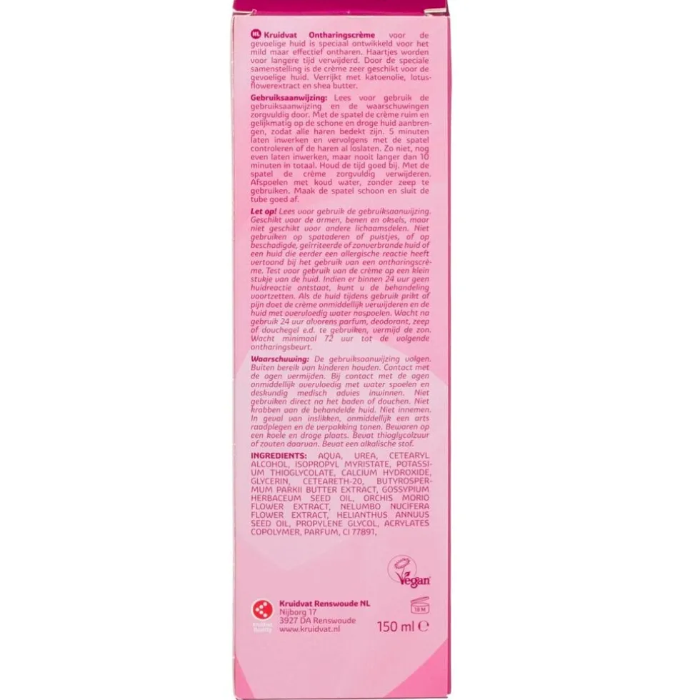 Maak thuis ontharen gemakkelijk met de Kruidvat Ontharingscrème voor de Gevoelige Huid. De haartjes worden voor langere tijd verwijderd en je hebt minder snel last van stoppeltjes.