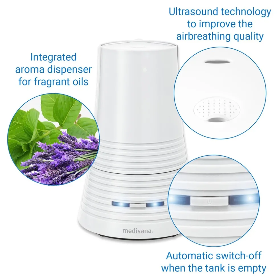 Reden genoeg om de AH 662 compacte luchtbevochtiger in huis te halen. Dit trendy design in combinatie met de compacte vormgeving misstaat in geen enkel huishouden. Dankzij de ultrasone vernevelingstechnologie zorgt u op een energiezuinige en efficiënte manier voor de juiste luchtvochtigheid in huis. Indien gewenst, voegt u een lekker aroma toe in het geintegreerd aromavak zodat niet alleen de luchtvochtigheid naar een optimaal niveau gebracht wordt, maar ook een heerlijke geur wordt verspreid. Het waterreservoir geeft met een rode LED aan wanneer het reservoir leeg is en schakelt dan automatisch uit.