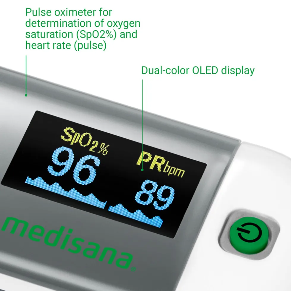 De PM 100 pulsoximeter van medisana meet betrouwbaar en nauwkeurig de zuurstofverzadiging in het bloed en de hartslag. Beide meetwaarden kunnen op het goed afleesbare OLED-display in vier verschillende perspectieven in staaf- of golfvorm worden weergegeven. Het apparaat schakelt na acht seconden automatisch uit, waardoor de batterij wordt gespaard. Dit is slechts een van de voordelen van dit medische product van Medisana.