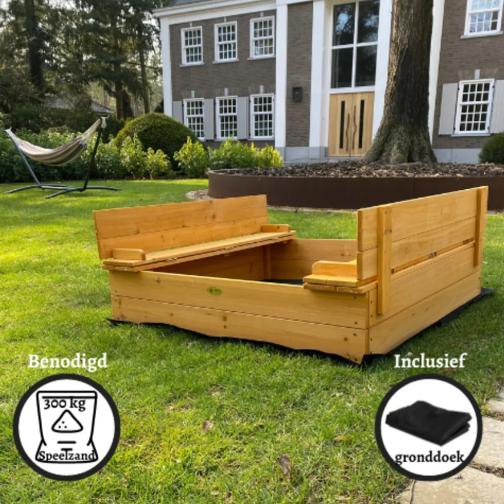 Online Rijoka Houten Zandbak 2 Banken Inclusief Grondzeil Inklapbaar 127×127