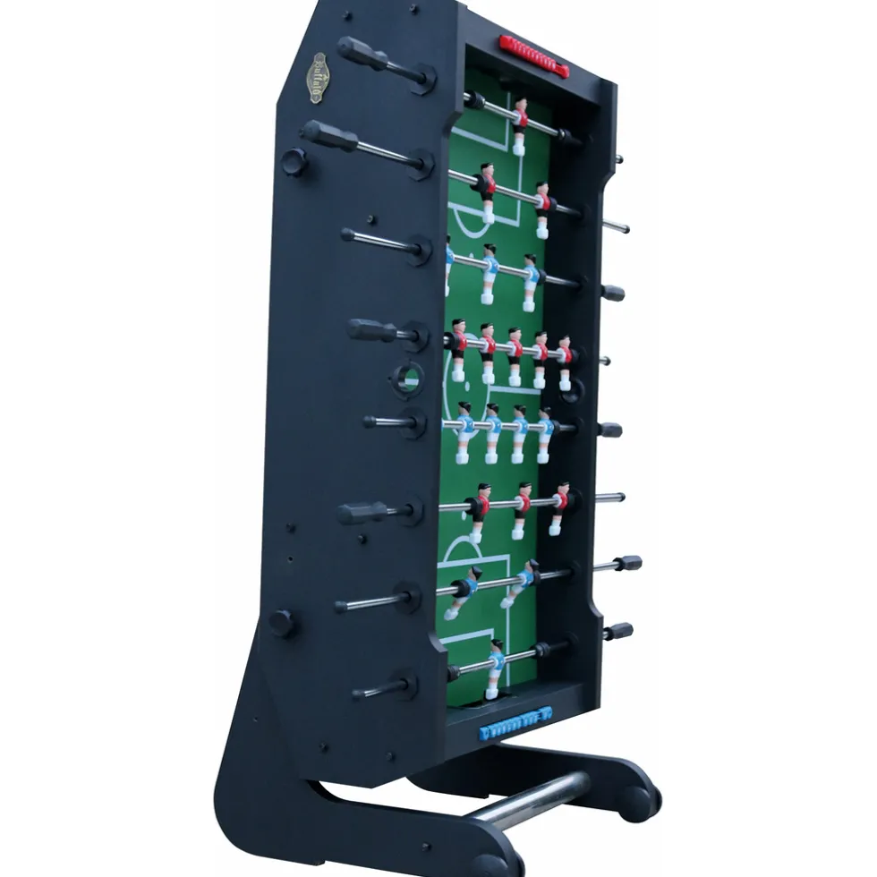Stevig, duurzaam, plaatsbesparend! De Trophy tafelvoetbaltafel is opklapbaar en heeft transportwielen om de tafel gemakkelijk te verplaatsen en op te kunnen bergen. De tafel zorgt gegarandeerd voor vele uren speelplezier, voor zowel jong als oud! Nodig familie en vrienden thuis uit en organiseer een toernooitje voor maximale spanning. Wanneer iedereen uitgespeeld is, til je met gemak 1 kant op, zodat de tafel rechtop opgeborgen kan worden. Tafelvoetbal gaat erg snel en is daardoor ook een ideale training voor oog/handcoördinatie en het reactievermogen. Specificaties: