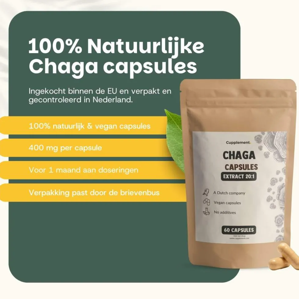 Outlet Cupplement 20% Korting | Chaga Extract Capsules 400mg
