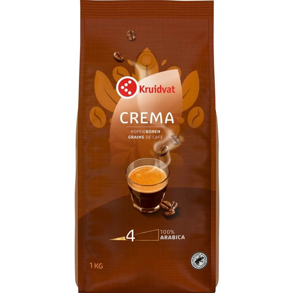 Kruidvat Crema Milde Espressobonen zijn gemaakt van 100% Arabicabonen. Ideaal voor een espresso of café crema met een milde, licht zoete smaak en een goudkleurige crèmelaag.