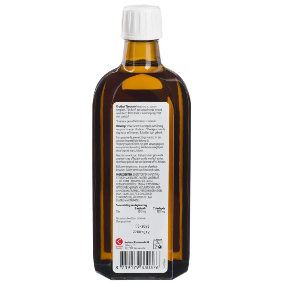 De natuurlijke bestanddelen zijn weldadig en verzachtend voor de keel. Kruidvat Suikervrij Tijm Siroop bevat extract van de tijmplant.