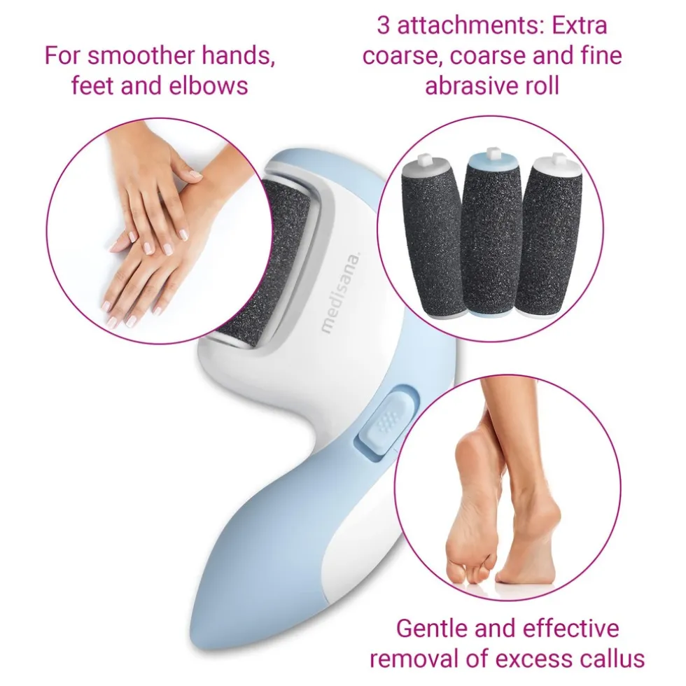 De CR 870 eeltverwijderaar verwijdert eelt op grondige en effectieve wijze en zorgt in een handomdraai voor mooie zijdezachte voeten, handen en ellebogen. Het mooie design van de CR 870 is voorzien van een ergonomisch anti-slip handvat en een roterende, verwisselbare kop.