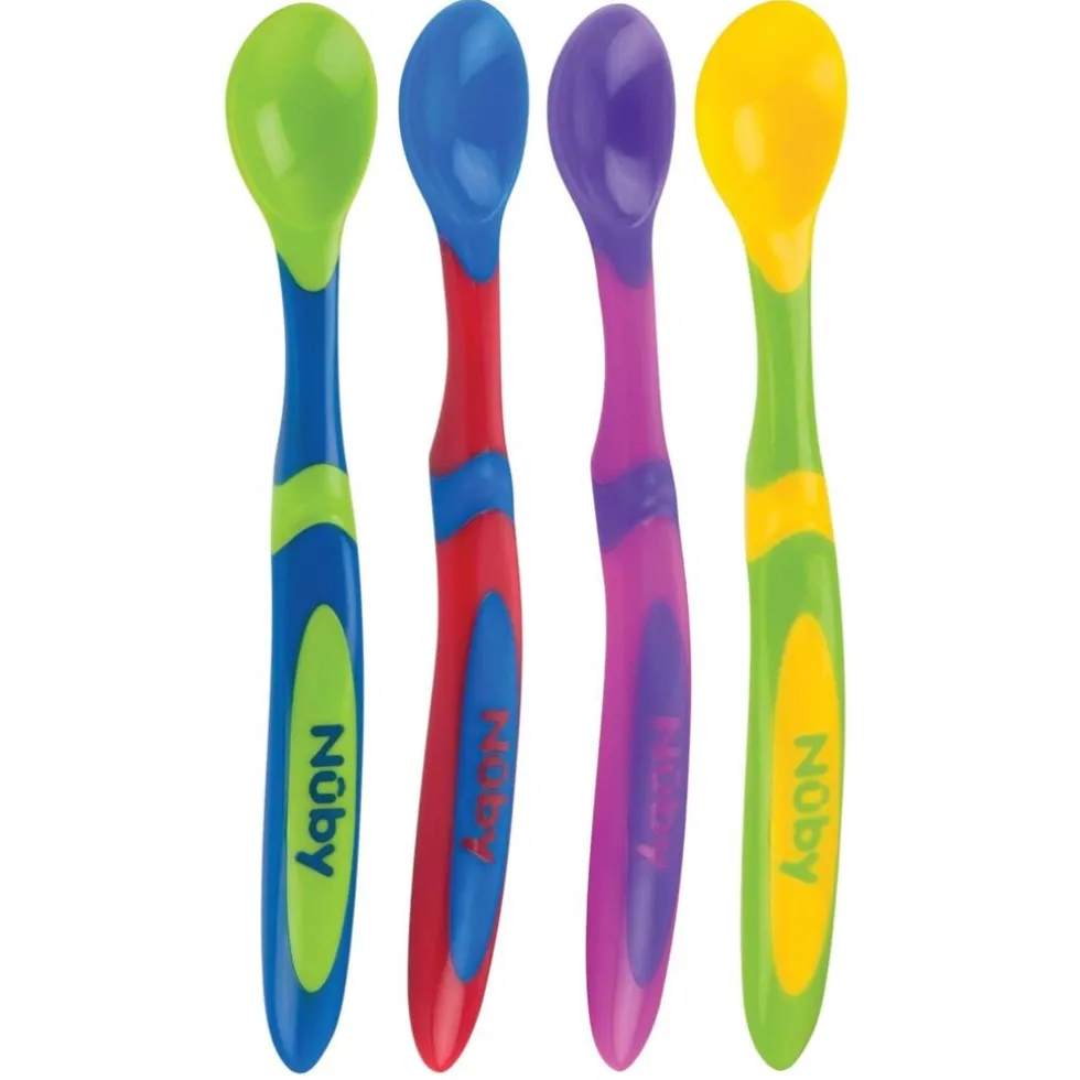 De lepeltjes van Nûby zijn per vier verpakt en geschikt voor kinderen vanaf 6 maanden.