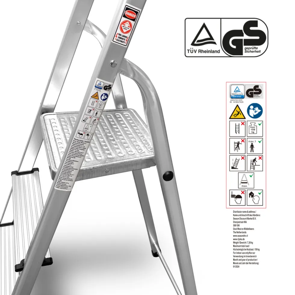Outlet Rijoka Huishoudtrap Aluminium 4 Treden Anti Slip Treden Opbergkapje