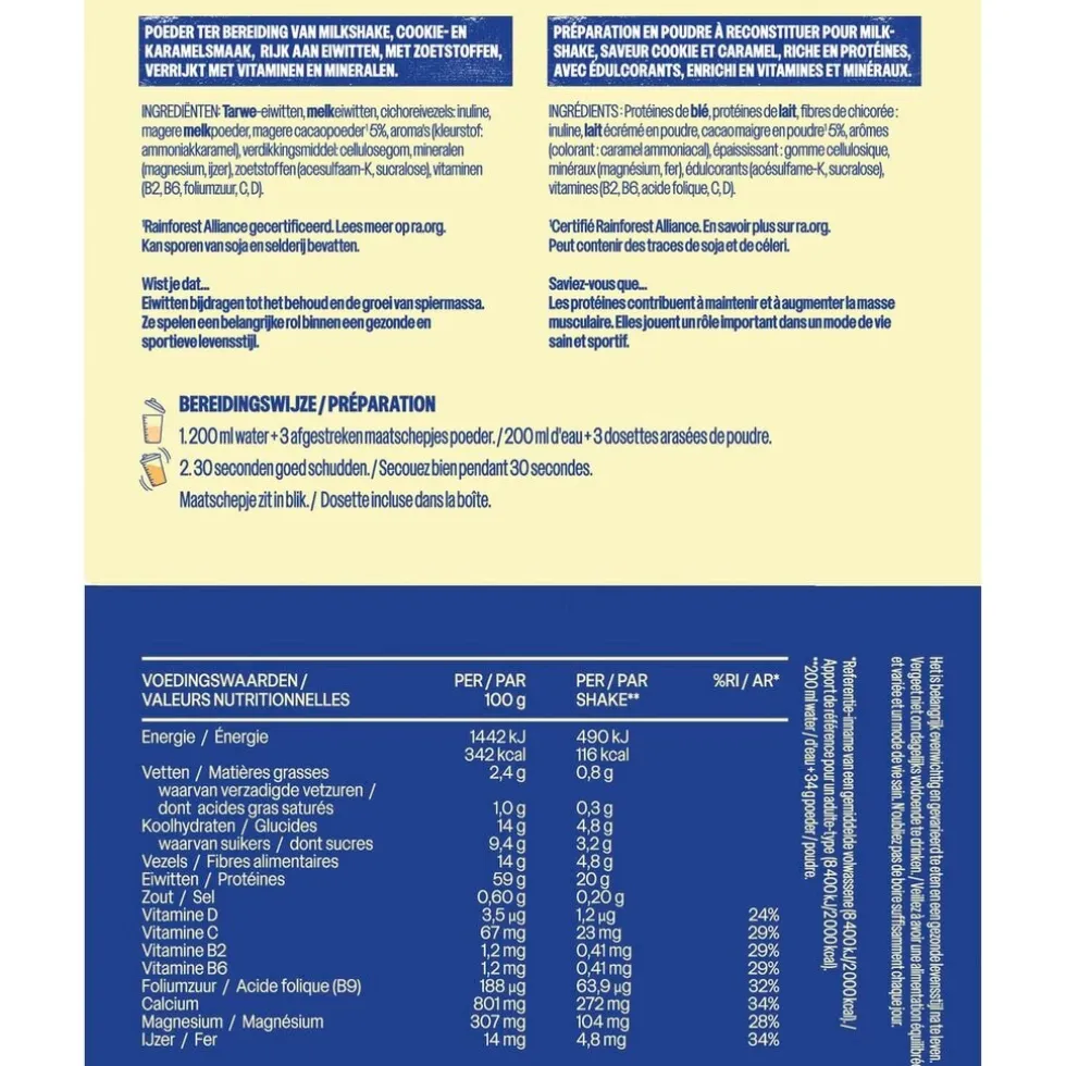 Deze maaltijdshake met vanillesmaak is voorzien van alle belangrijke voedingsstoffen en is rijk aan vitaminen, mineralen en eiwitten. Hierdoor zorgt de shake voor een langdurig verzadigd gevoel, is het een ideale maaltijdvervanger én de oplossing voor het behoud van een gezonde levensstijl.