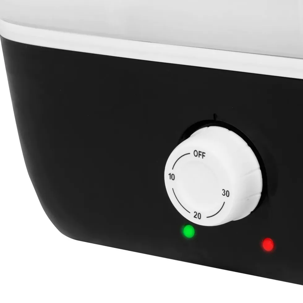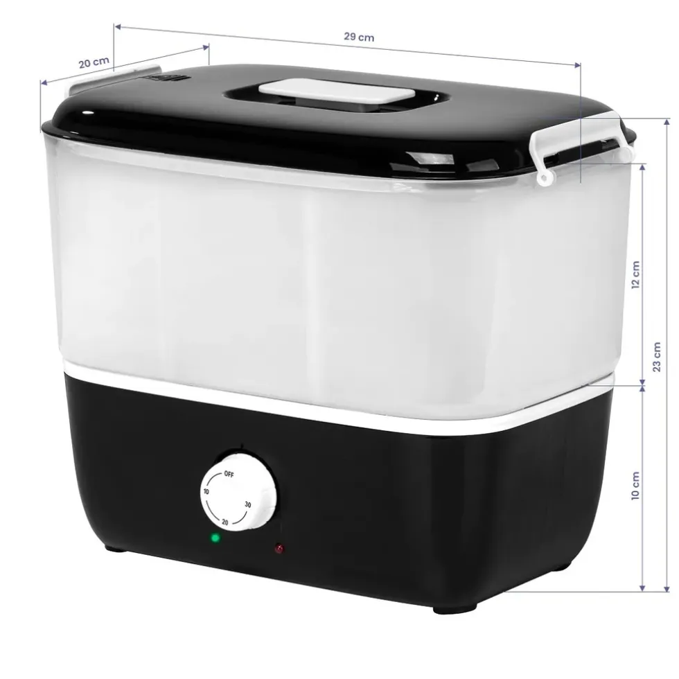 De handdoekwarmer heeft een timer waarmee u de verwarmingstijd kunt instellen op 10, 20 of 30 minuten. Het apparaat schakelt automatisch uit wanneer de tijd verstrijkt, wat de veiligheid garandeert. Daarnaast heeft het LED-indicatielampjes en minimale en maximale vulniveaumarkeringen voor gemak en veiligheid in gebruik.