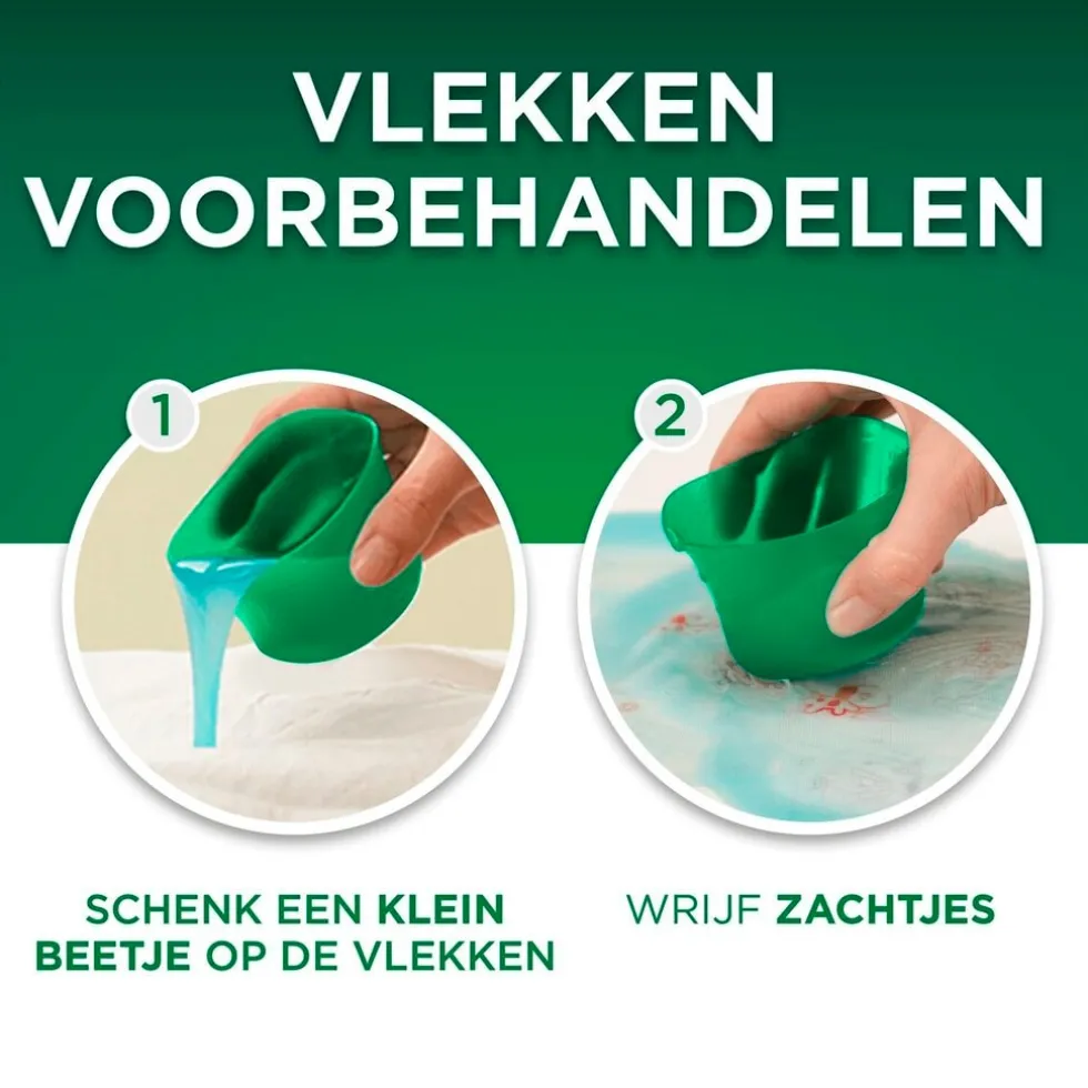 Ariel +Ultra Vlekverwijdering Vloeibaar Wasmiddel verwijdert ingedroogde vlekken zelfs na zeven dagen. De formule is speciaal ontwikkeld voor koude was, voor onberispelijke resultaten op koudere temperaturen.