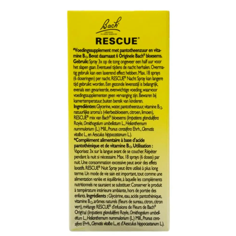Bach Rescue Nacht Spray ondersteunt in stress-situaties met vitamine B5 en bij moeheid met vitamine B12.