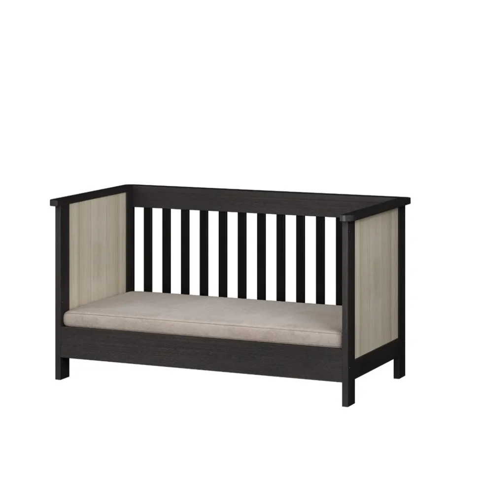 Het bed is zwart van kleur en afgewerkt met eikenhout kleurige details. Dit zorgt voor een unieke look en maakt van het meegroei ledikant een eche eyecatcher voor in de babykamer.Combineer het meegroei ledikant met accessoires in jouw favoriete kleur om de babykamer aan te passen naar jouw persoonlijke stijl en voorkeuren.
