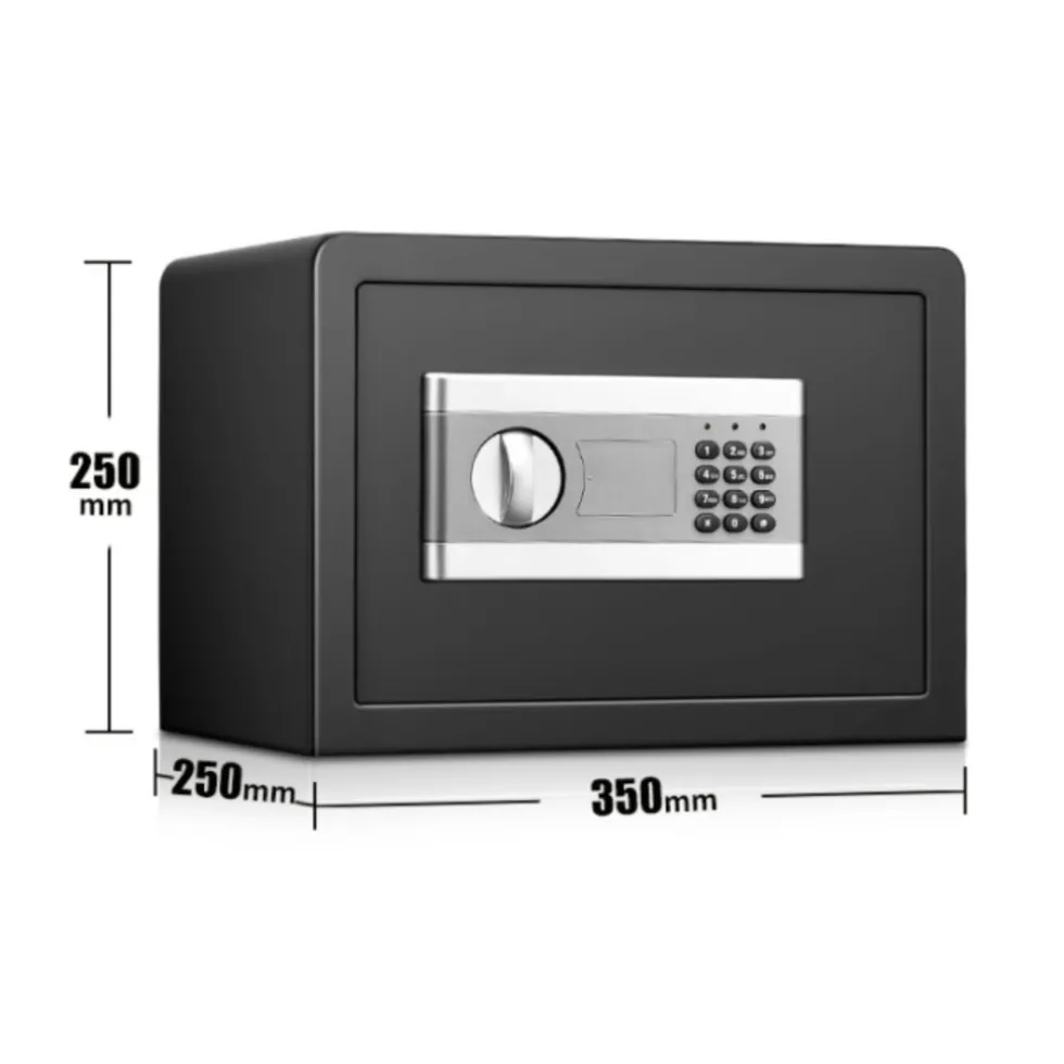 De Brandwerende kluis van Buxibo heeft een lengte van 35 centimeter, breedte van 25 centimeter en hij is 25 centimeter hoog. Danzij deze compacte afmeting kan je er je belangrijke sieraden, documenten en paspoort kwijt zonder enig probleem.