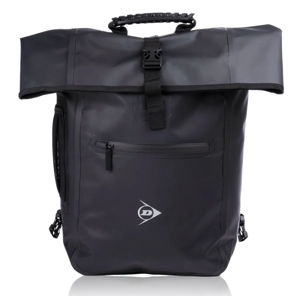 De fietsrugzak heeft een inhoud van 25 liter en is gemaakt van een waterdichte stof zodat jouw spullen ook bij slechter weer goed beschermd blijven in de Dunlop fietstas. De opening van de tas zit aan de bovenkant die je afsluit doormiddel van een rol topafdichtig, hierdoor zal er geen water in de tas lekken wanneer het regent. Je sluit de rugzak veilig af met een gespafsluiting.
