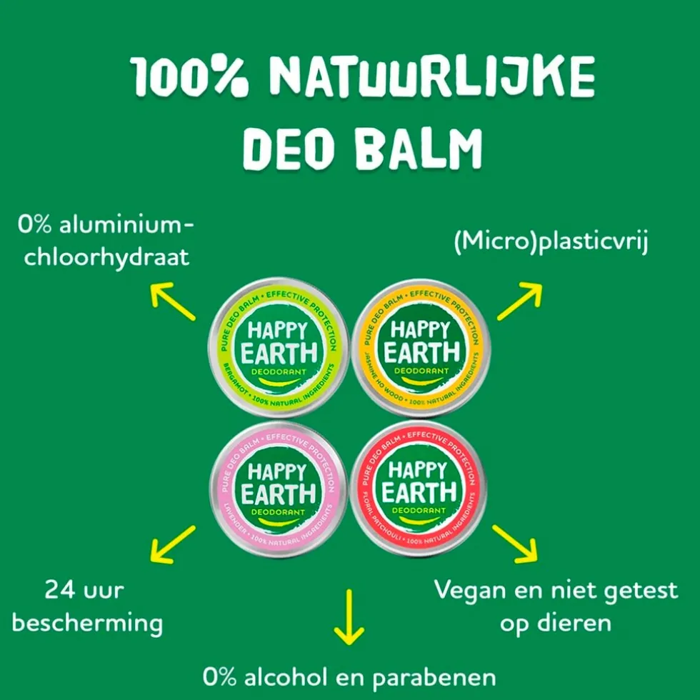 De Happy Earth 100% Natural Bergamot Deodorant Balm is een 100% natuurlijke, vegan deodorant die gemaakt is van ingrediënten waar je huid én de aarde blij van worden.
