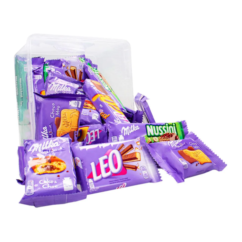 - 5 x Milka Leo Go (48g) – Een extra portie van de geliefde Milka Leo Go, voor nog meer crunch en chocoladeplezier.