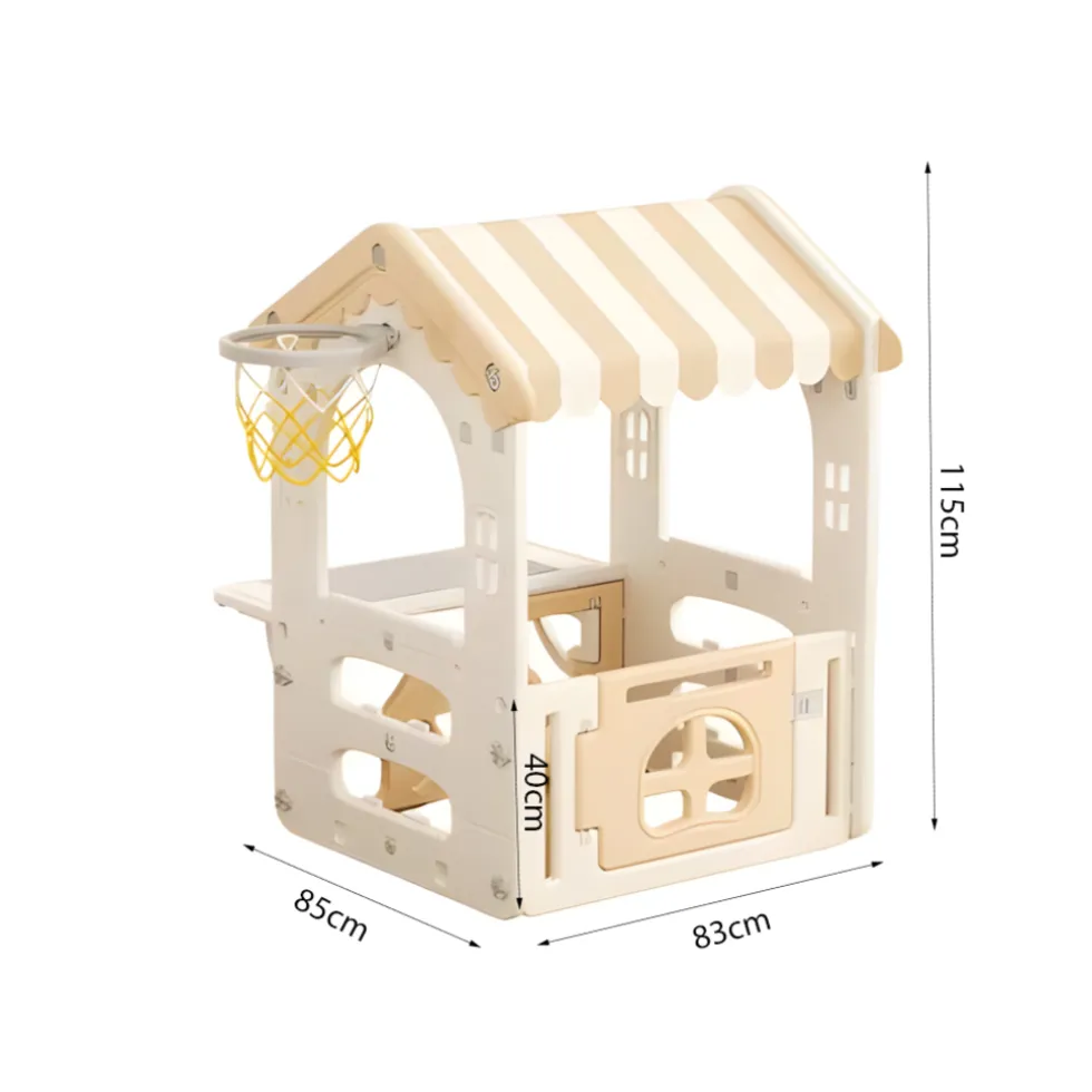 Plaats het speelhuis op een vlakke ondergrond en zorg ervoor dat er voldoende ruimte is rondom het huisje voor veilig gebruik.