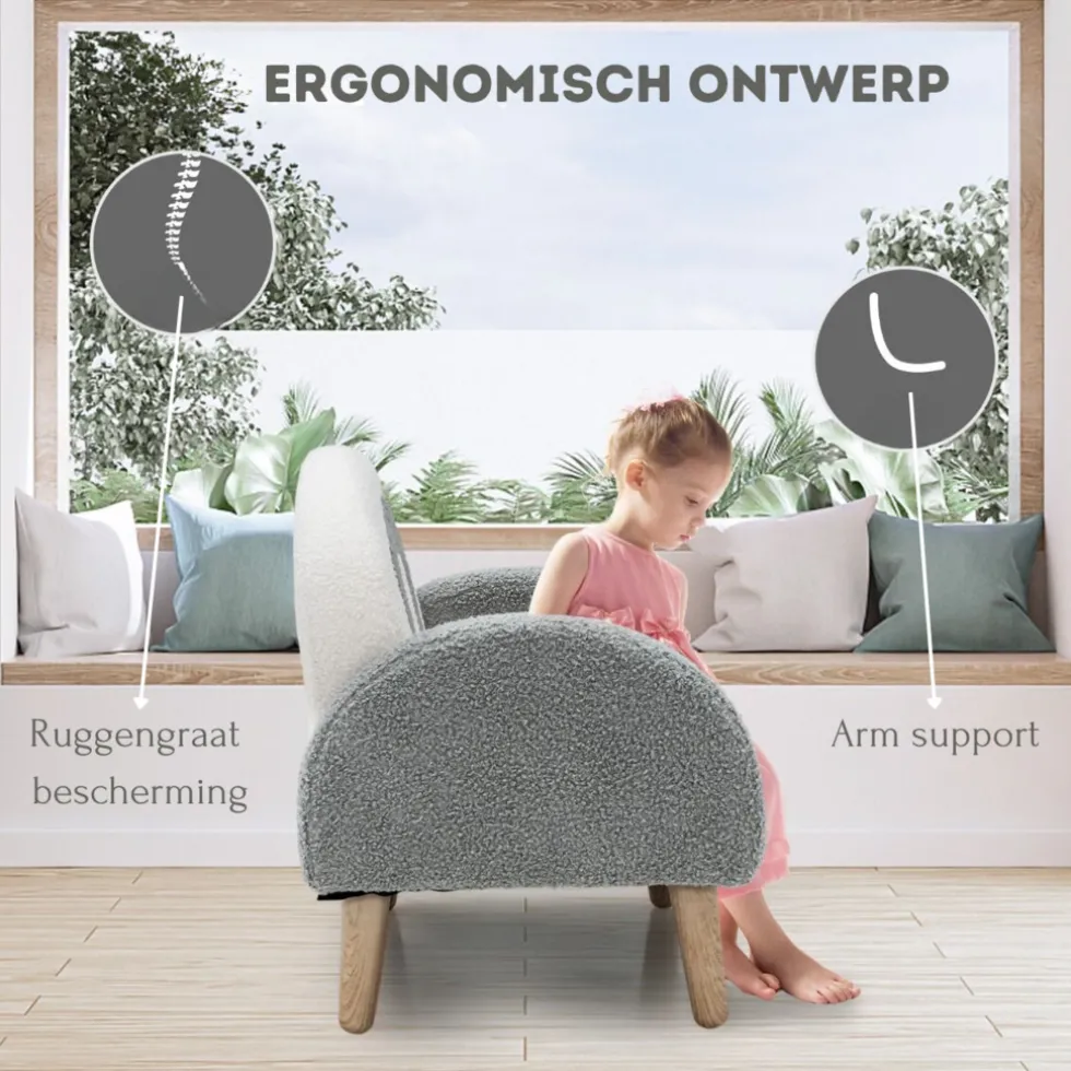 Lounge stoel: Met ergonomische rugleuning en armleuningen voor een goede zithouding, ideaal voor kinderen van 3-5 jaar.