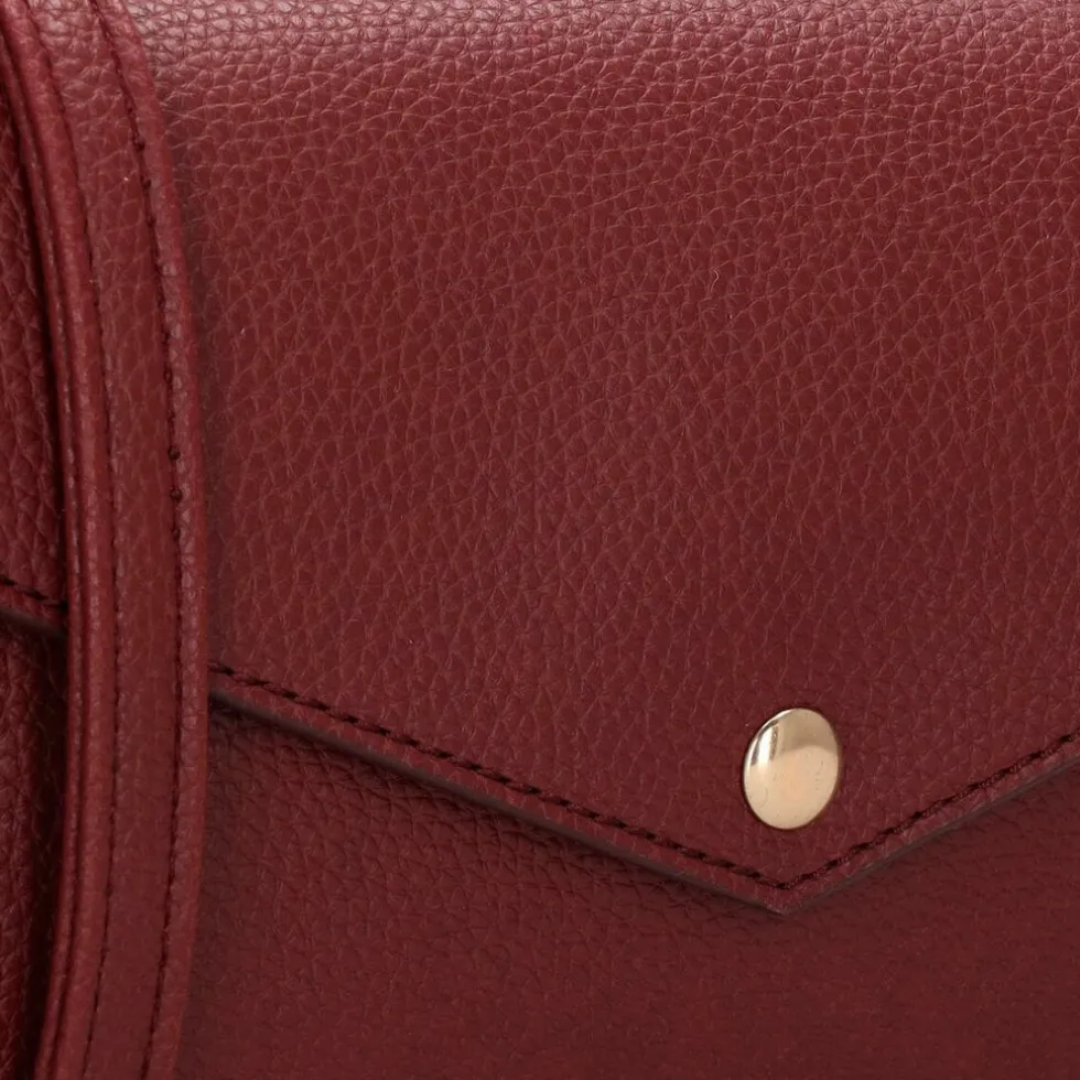 De handtas beschikt over een hoofdritsvak en binnenritsvakje. De buitenkant is gemaakt van 100% polyurethaan en de binnenkant van 100% polyester.