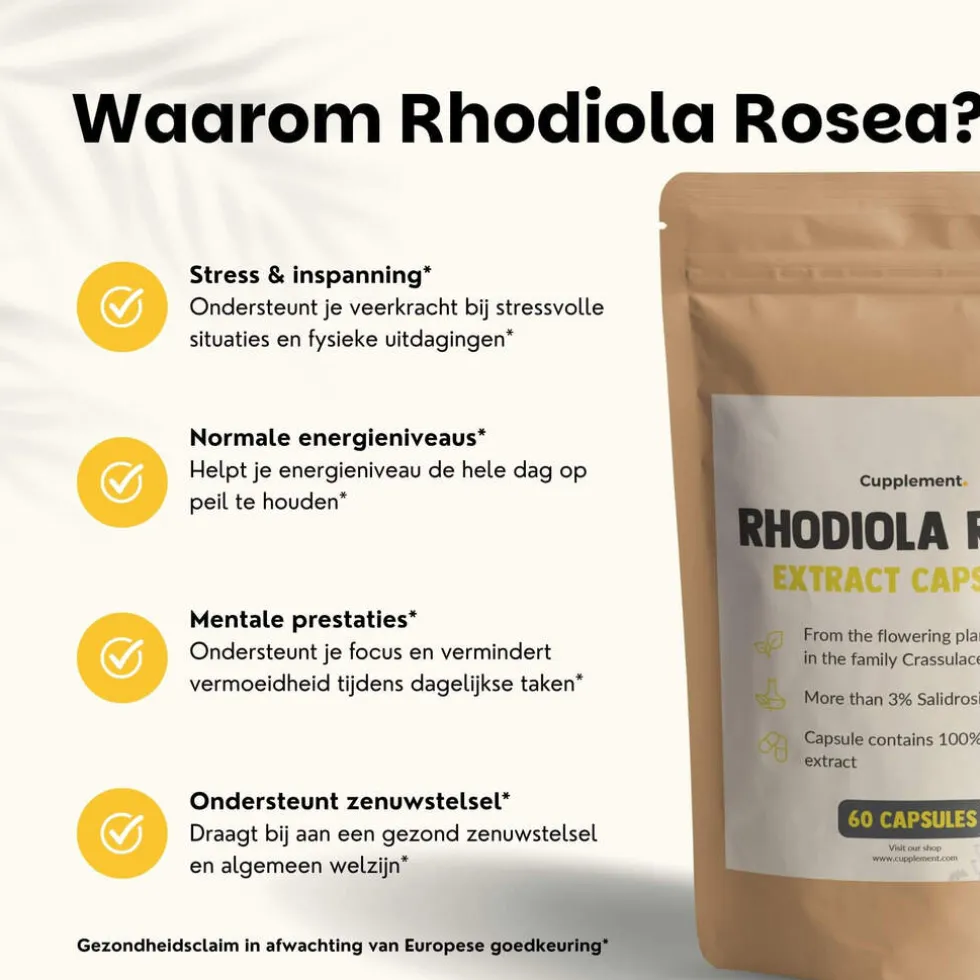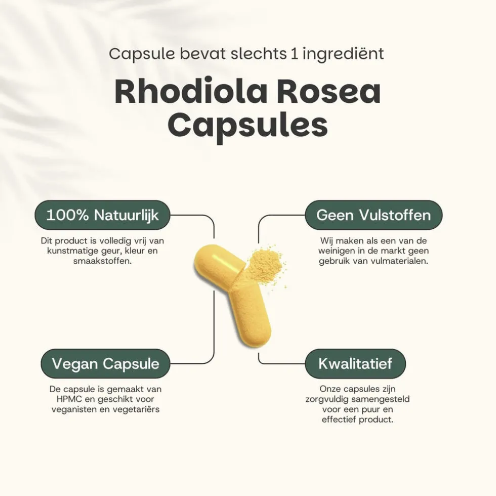✔️ 500 mg Rhodiola Rosea extract per capsule ✔️ Zonder vulmiddelen ✔️ 100% Natuurlijk Supplement