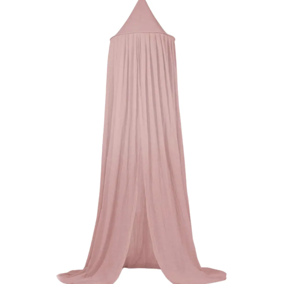 De bedhemel is handwasbaar. Gebruik warm water met een mild sopje om vuil of vlekken voorzichtig te verwijderen. Laat het doek goed drogen voordat je het weer ophangt. Vermijd agressieve schoonmaakmiddelen en langdurige blootstelling aan zonlicht.