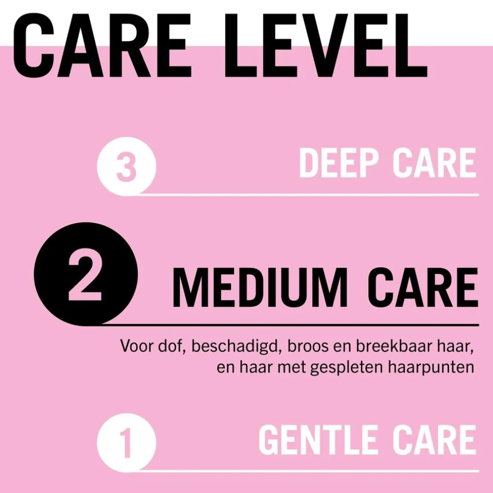 De Gliss Liquid Silk Shampoo heeft een Gliss care level 2. DIt betekent medium verzorging, met een uitgebalanceerde samenstelling van voedende ingrediënten.