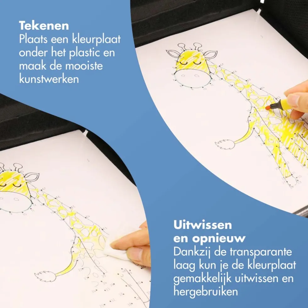 - Transparante laag waardoor kleurplaten herbruikbaar zijn