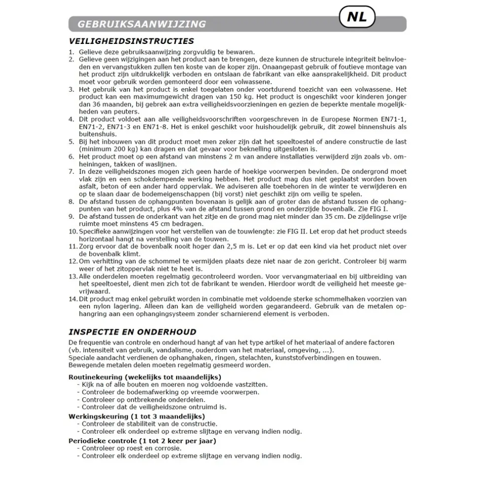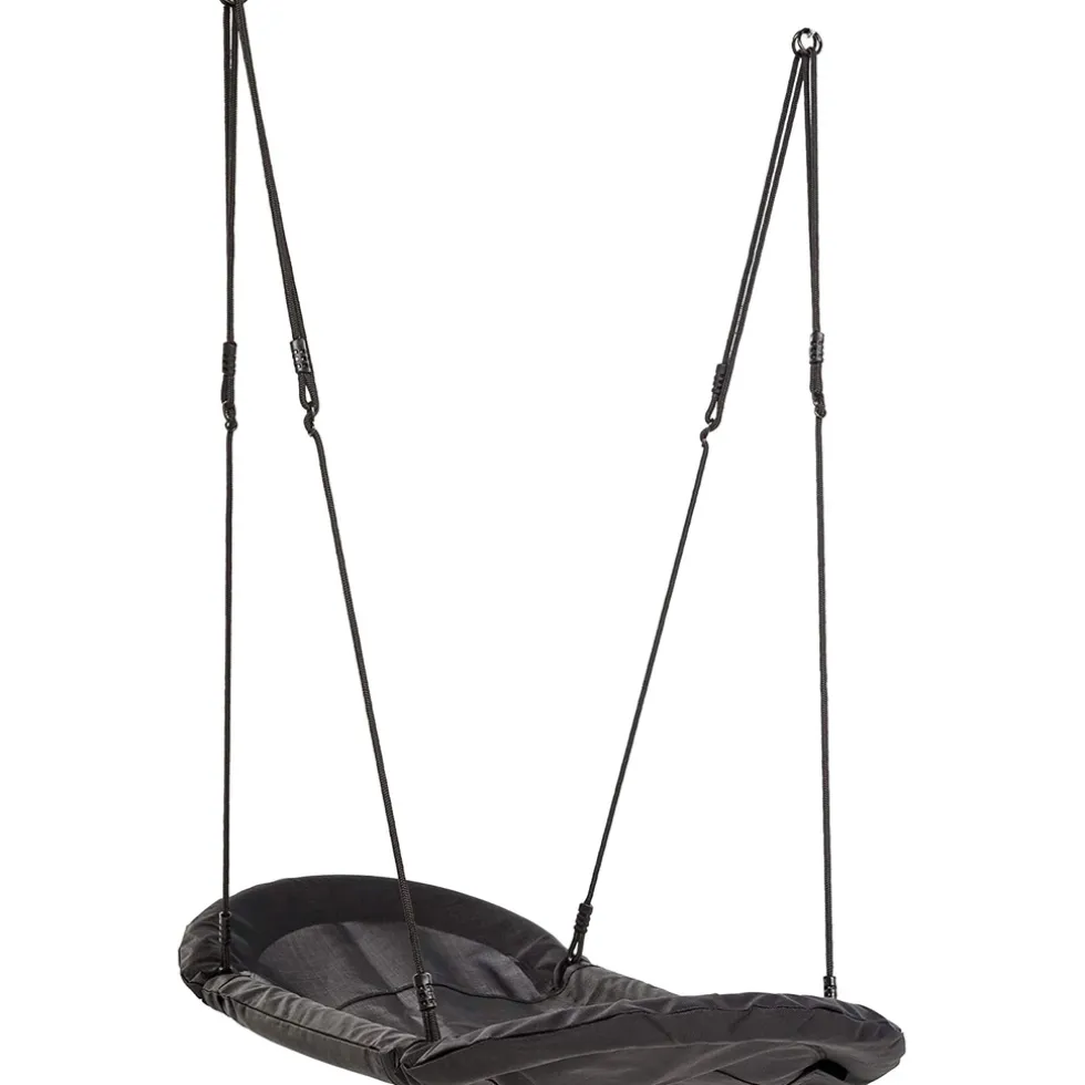 Deze stoere KBT Grandoh nestschommel is geheel uitgevoerd in zwart. Ga jij languit op de Grandoh nestschommel of gaan jullie met zn allen? Met een maximaal belastbaar gewicht van 150 kg kan de KBT Grandoh nestschommel heel wat aan! De KBT nestschommel heeft een rondom gevoerd stalen frame en is gemaakt van waterafstotende stof. Het gevlochten zwarte touw is in hoogte verstelbaar. De Grandoh nestschommel is geschikt voor schommelframes met een hoogte tussen de 200 en 240 cm. De schommel wordt niet gemonteerd geleverd in een compacte doos met een duidelijk montage handleiding. De nestschommel mag enkel gebruikt worden in combinatie met schommelhaken voorzien van een nylon lager. Specificaties: