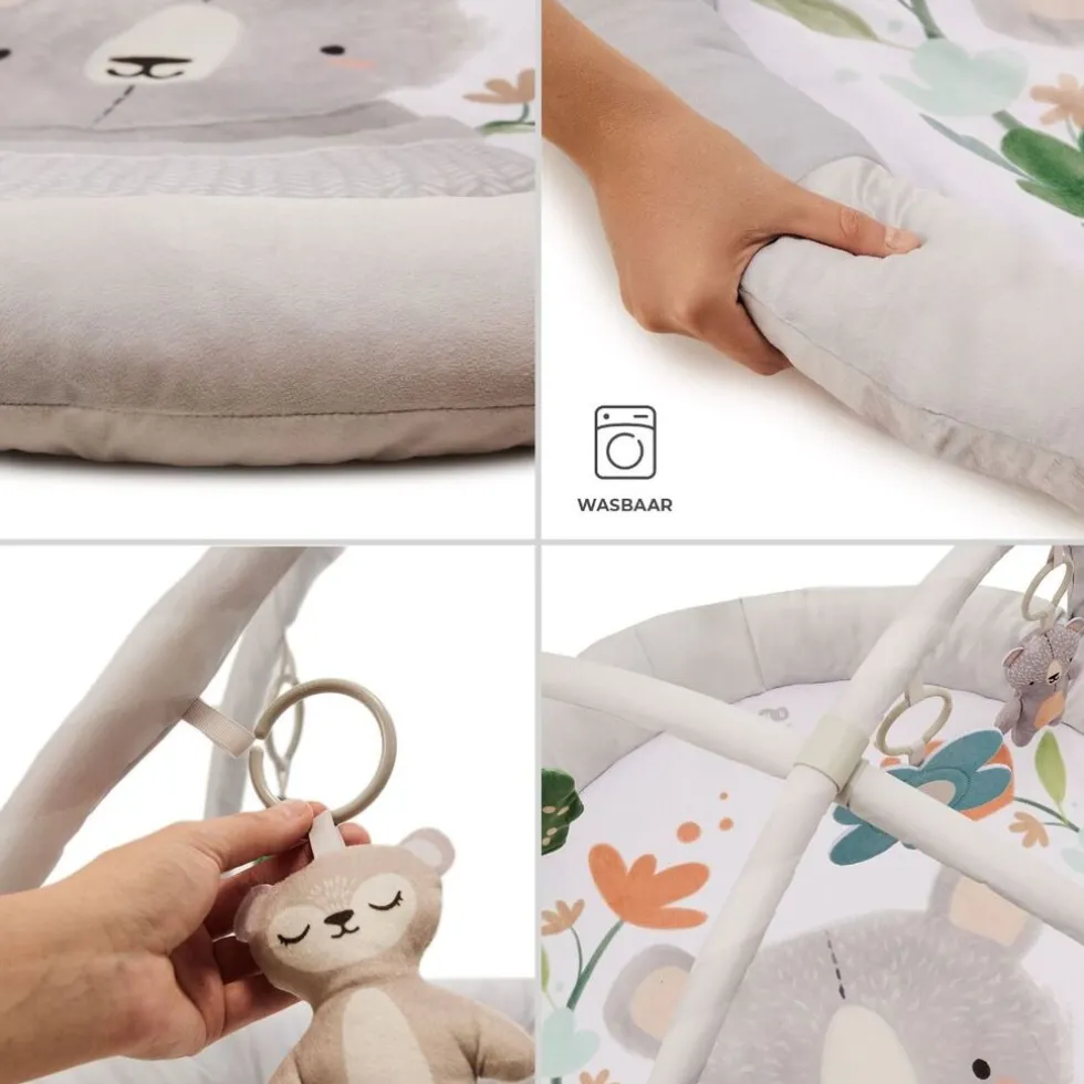 Aan de speelboog kunnen de speeltjes afzonderlijk worden bevestigd, zodat je het kleed kan inrichten naar de behoeften van je kindje.