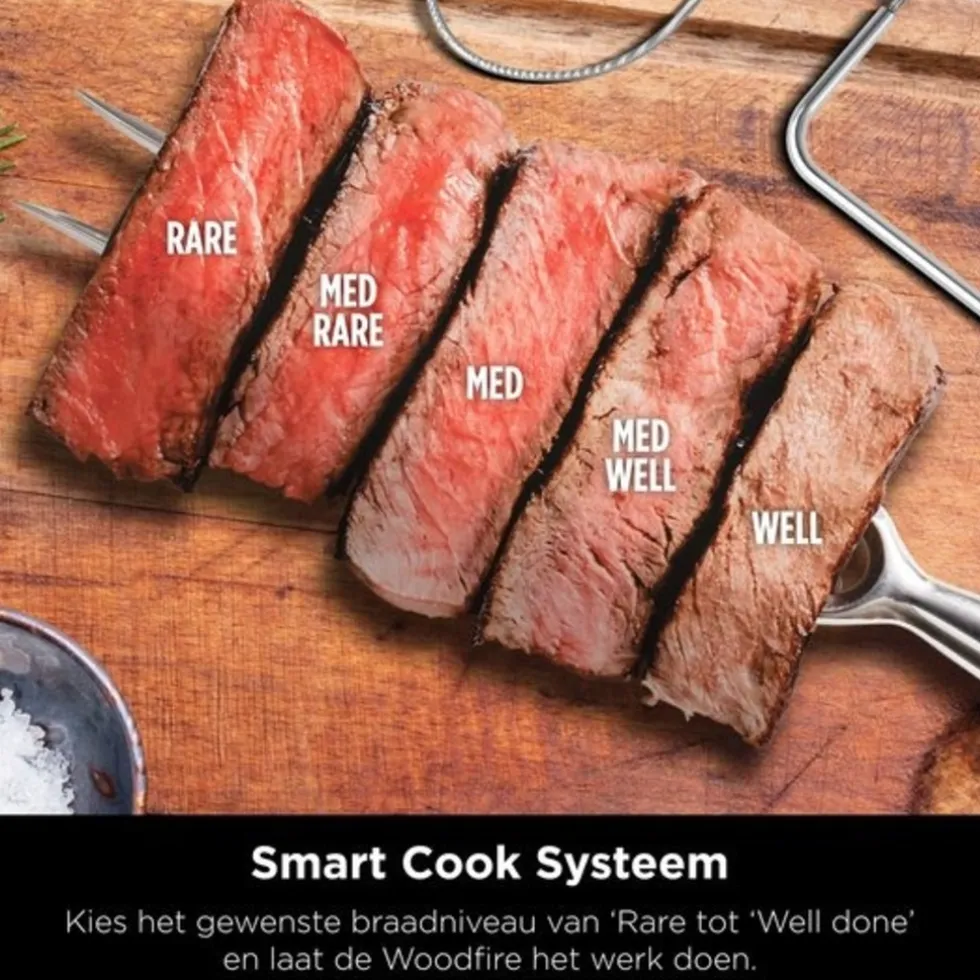 - Afstandsbediening: Pas de kooktijd en temperatuur aan en voeg Woodfire-smaak toe, rechtstreeks vanuit de app.