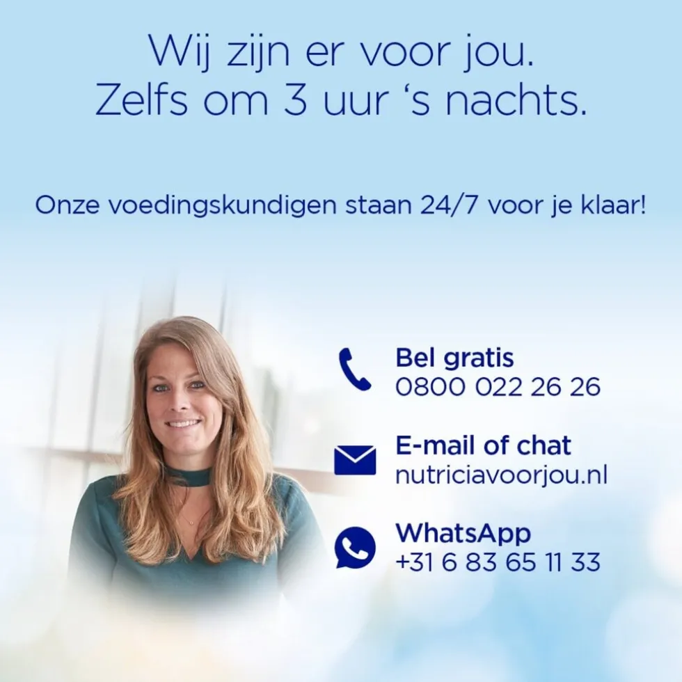 – Gebruik Nutrilon Omneo 2 alleen onder medisch toezicht. Wil je Nutrilon Omneo 2 gebruiken? Overleg dan met je consultatiebureau of arts.