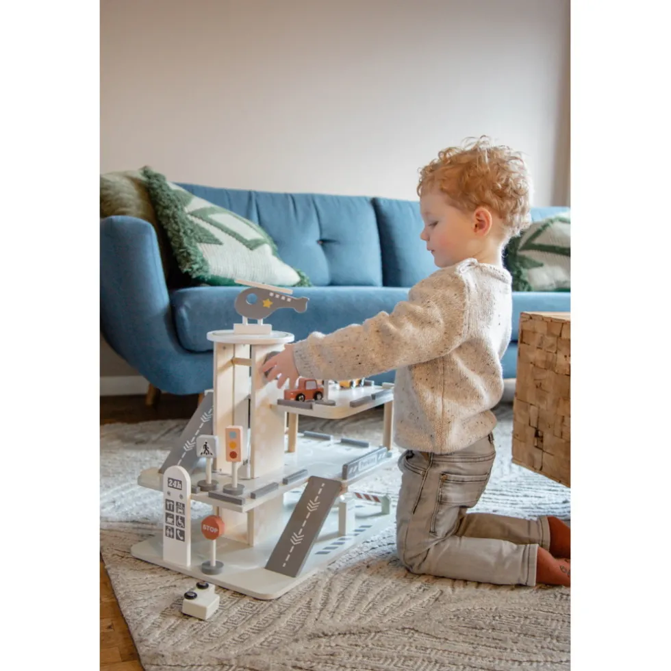Deze houten parkeergarage van Tryco is super stoer voor je kindje. De garage is helemaal hip, hij is voorzien van een carwash, een slagboom, een helikopterplatform, een takellift die met de hand te bedienen is én zelfs een elektrisch oplaadpunt voor elektrische auto’s. Genoeg om te ontdekken dus voor je kindje! Urenlang speelplezier is gegarandeerd.
