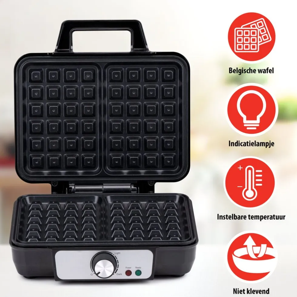 Wafelijzer anti-aanbaklaag en indicatielicht