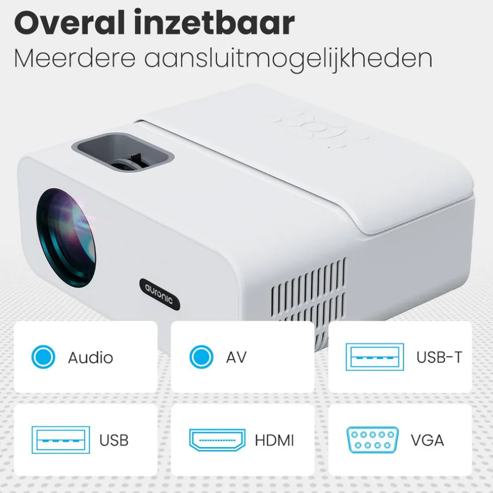 Voor alle grootbeeldliefhebbers Of je nu een zakelijke go-getter bent, een doorgewinterde gamer of een filmfanaat, de Auronic Beamer is de veelzijdige keuze voor iedereen. Hij maakt zakelijke presentaties kraakhelder, tovert je woonkamer om tot een sportarena en biedt gamers en filmliefhebbers een immersieve ervaring. Met de Auronic Beamer wordt elke visuele behoefte moeiteloos vervuld. Met zo’n breed scala aan mogelijkheden is het kiezen voor Auronic simpelweg een no-brainer.