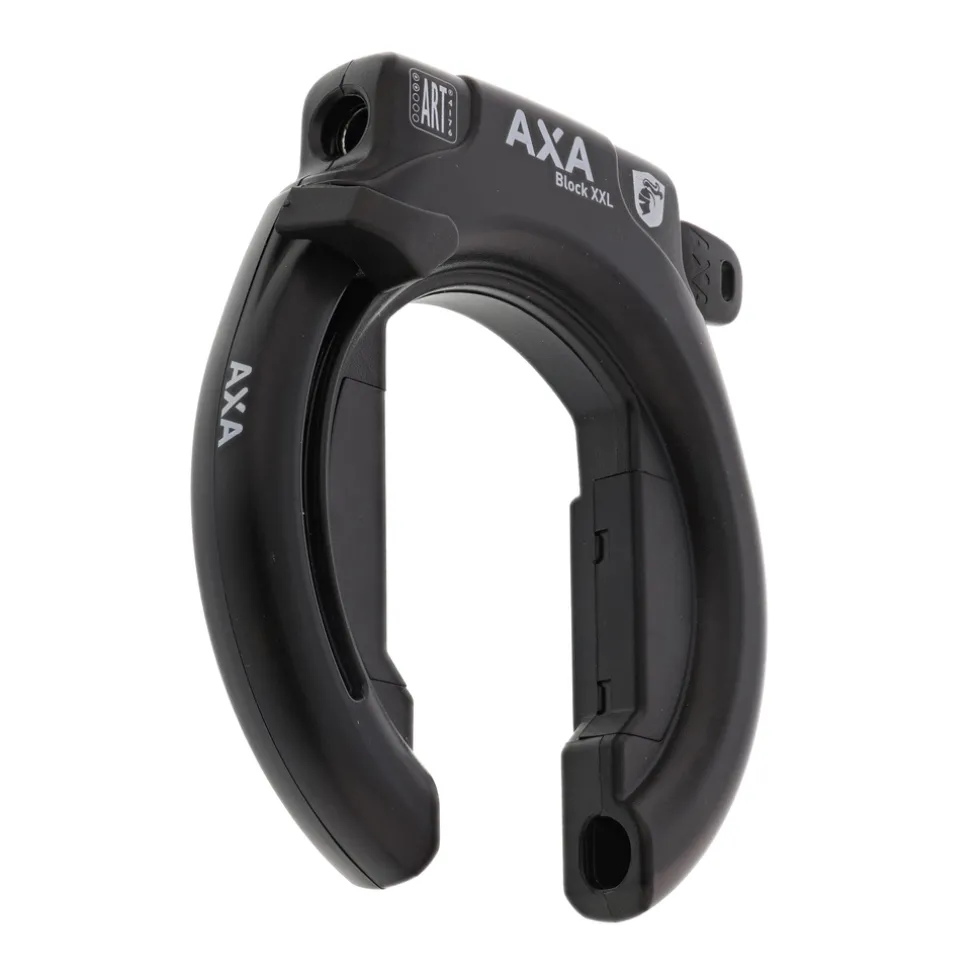 De AXA Block XXL is een hoogwaardig ringslot en heeft de mogelijkheid een ULC plug-in ketting of de UPI plug-in kabel in de zijkant van het slot te steken en zo uw fiets aan een vast object te verbinden. Met ART2** keuring, voldoet hiermee aan de eisen van het Nederlandse ART 2 sterren keurmerk en kan daardoor gebruikt worden om uw voertuig te verzekeren. Het ringslot biedt optimale beveiliging door de anti-boor cilinder en de gehard stalen beugel. De ergonomische bedieningsknop en online sleutelservice bieden u maximaal comfort. De Axa Block XXL heeft een extra brede opening zodat deze ook past bij brede spatborden of ballonbanden.
