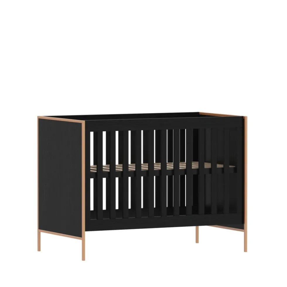 - Zwart baby bed met goudkleurige details