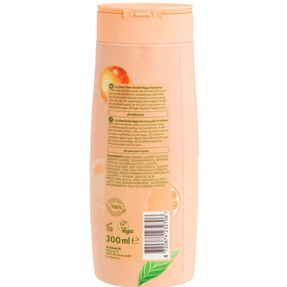 Kruidvat Happy Harmony Crème Douchegel met sinaasappelbloesem en cederhout maakt je douchebeurt vrolijk!